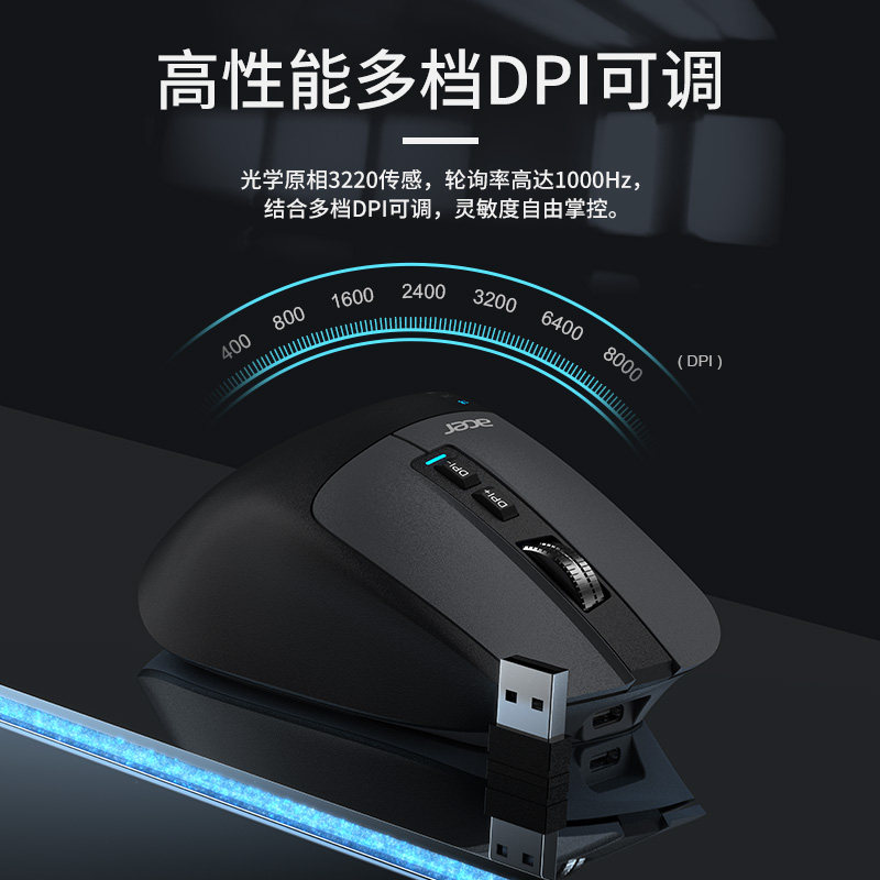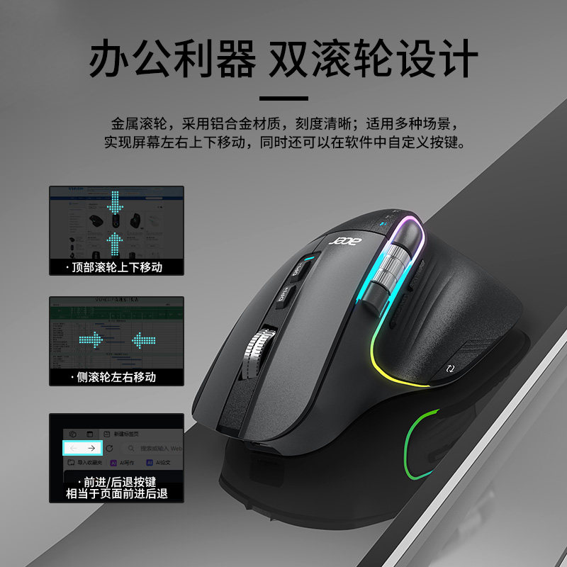 宏碁(Acer)充电鼠标双滚轮蓝牙鼠标可自定义宏鼠标多功能静音