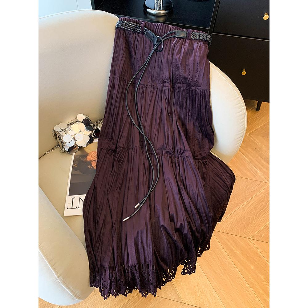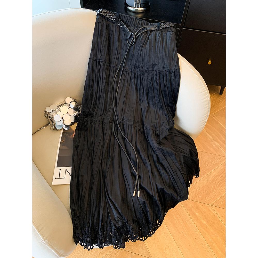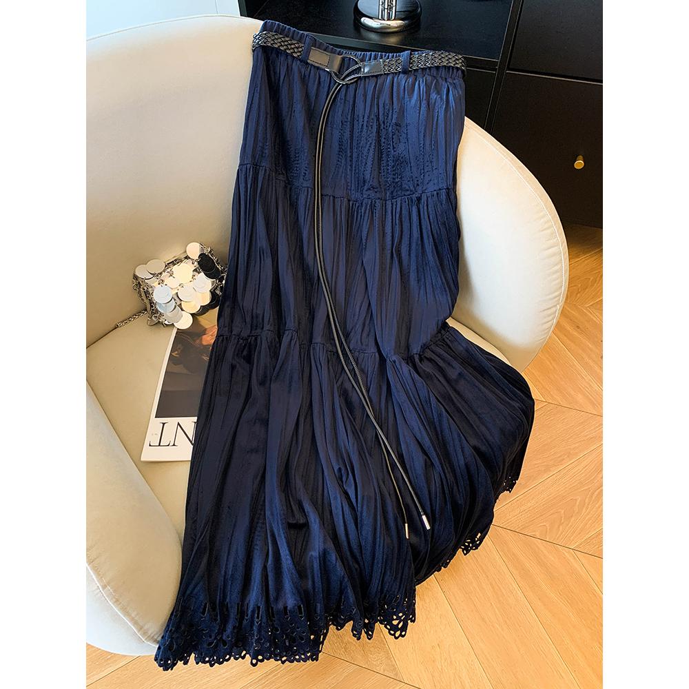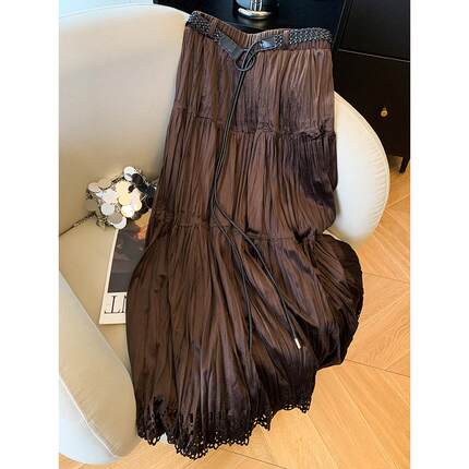 美拉德复古镂空下摆配腰带半身裙女秋季气质a字蛋糕裙长裙