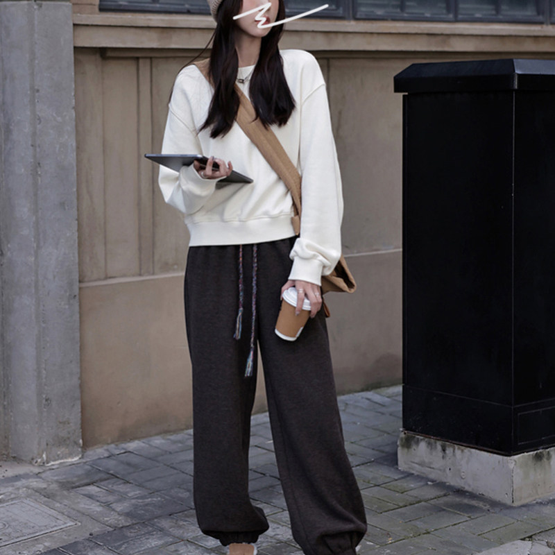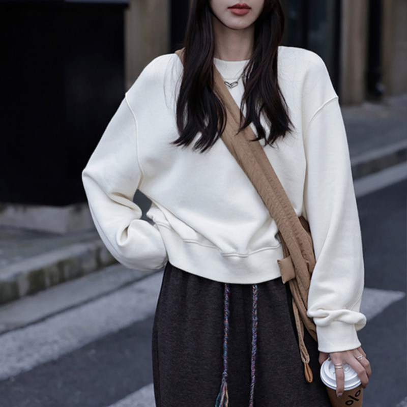 超好看白色短款卫衣女款小个子秋冬2025新款加绒加厚圆领套头上衣