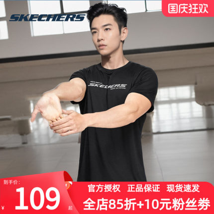 斯凯奇短袖男装2025夏季运动上衣黑色官方半袖健身训练速干T恤男