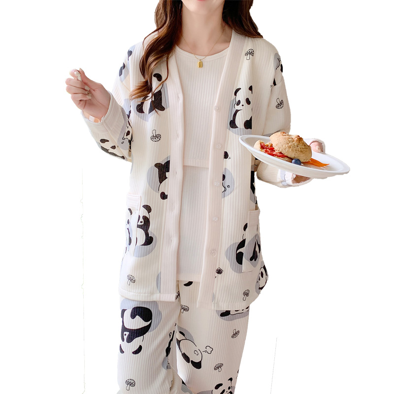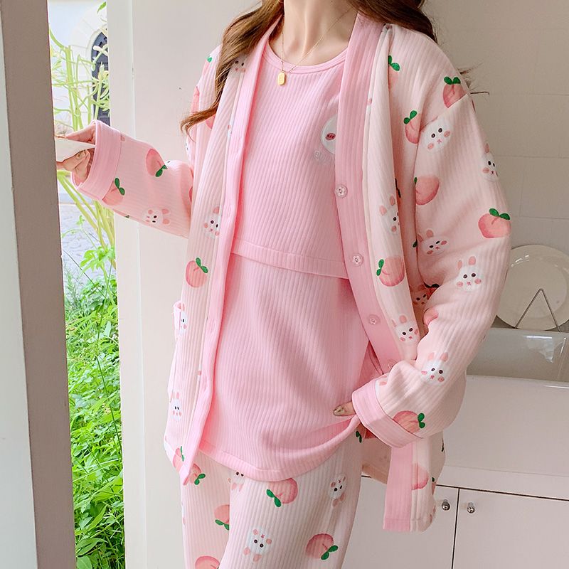冬天空气棉月子服三件套秋冬季产后加厚孕妇哺乳睡衣春秋纯棉坐月