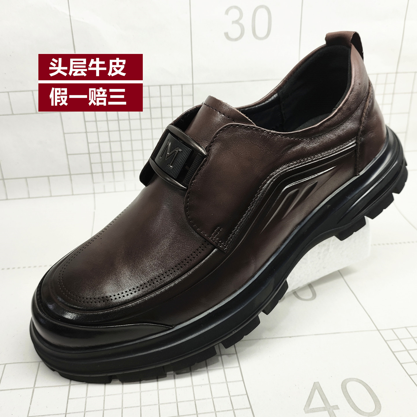 西瑞鸟头层牛皮男鞋2025秋新款商务休闲皮鞋一脚蹬爸爸鞋软底防滑