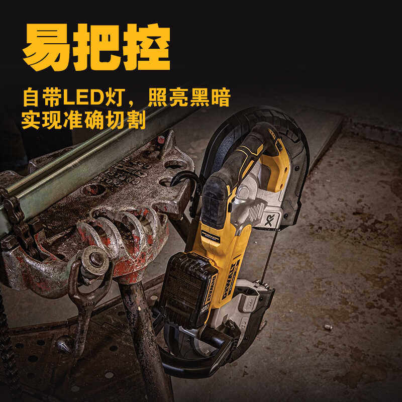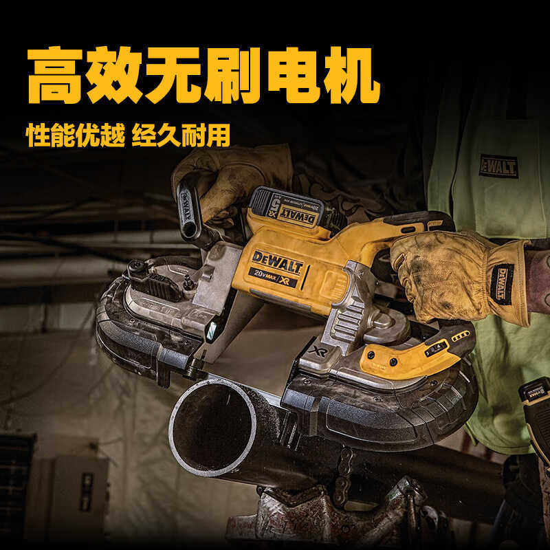 得伟20V锂电无刷深切带锯DCS374充电式无线便携金属刚钢管切割机