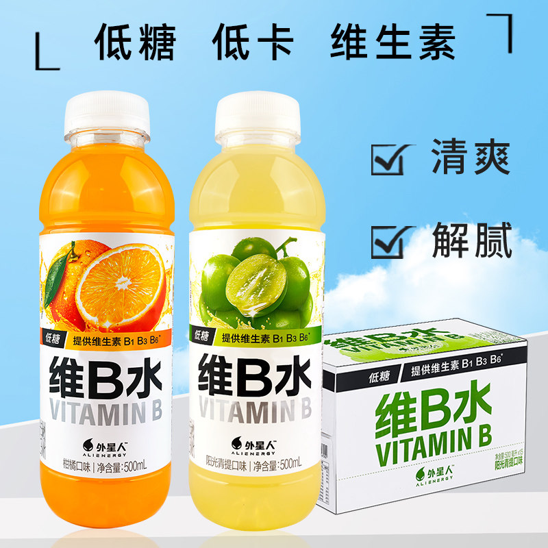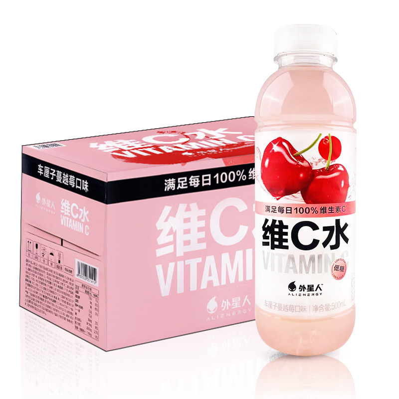 外星人维B维C水500ml*15瓶整箱车厘子柑橘青提低糖补充维生素饮料