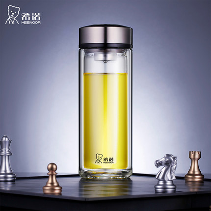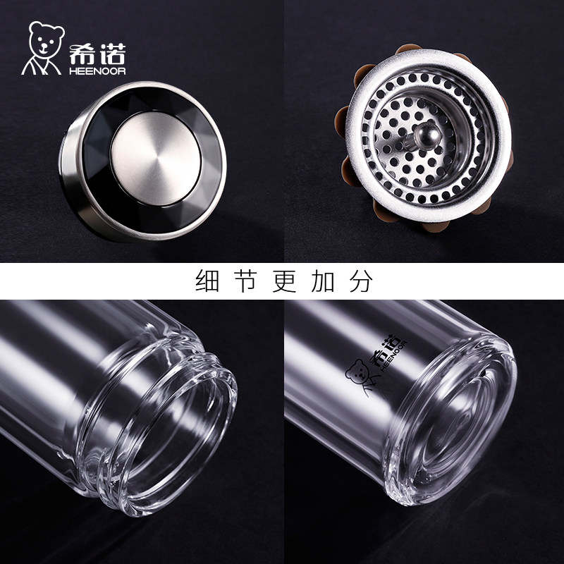 希诺玻璃杯双层隔热水杯便携高档商务家用加厚带盖过滤泡茶杯子