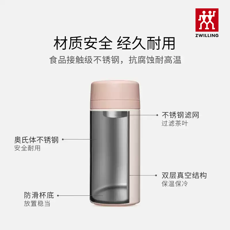 德国双立人粉色茶滤杯不锈钢保温杯泡茶杯水杯官方旗舰