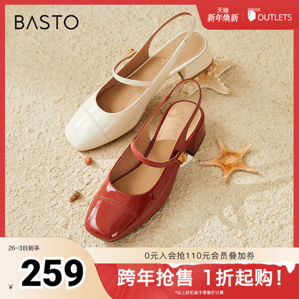 百思图春夏季新款商场同款时尚简约方头粗跟后空女凉鞋RA501BH4