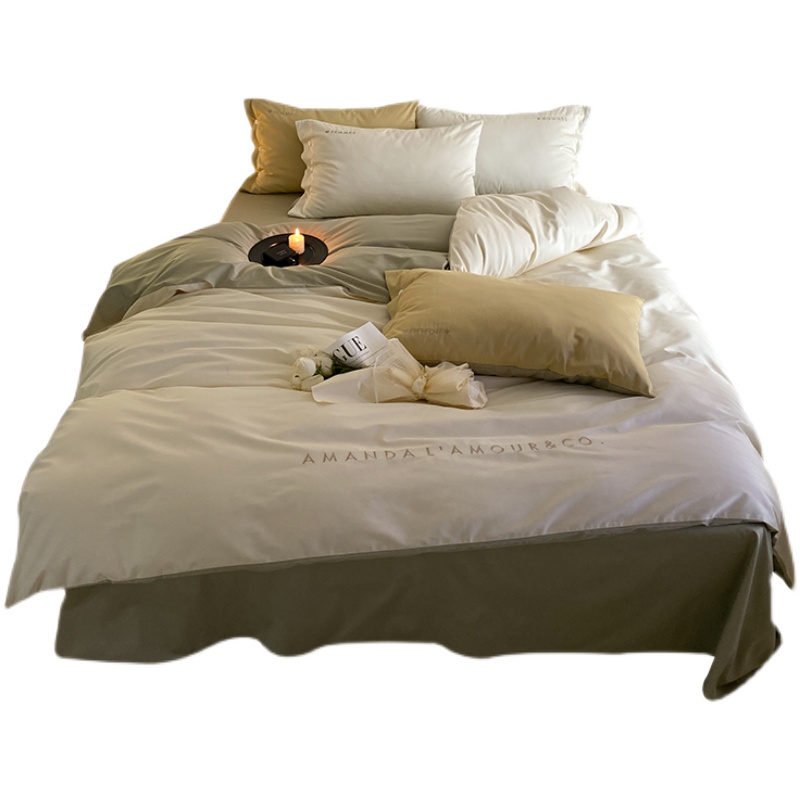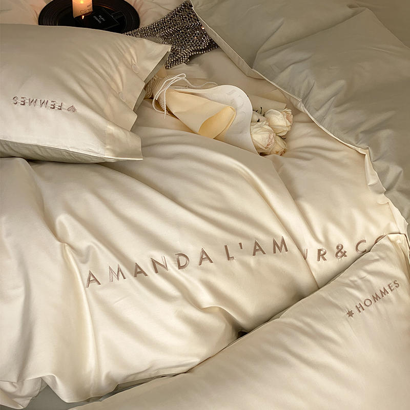 在耳边简约北欧风轻奢贡缎100S纯棉四件套刺绣长绒棉床上用品