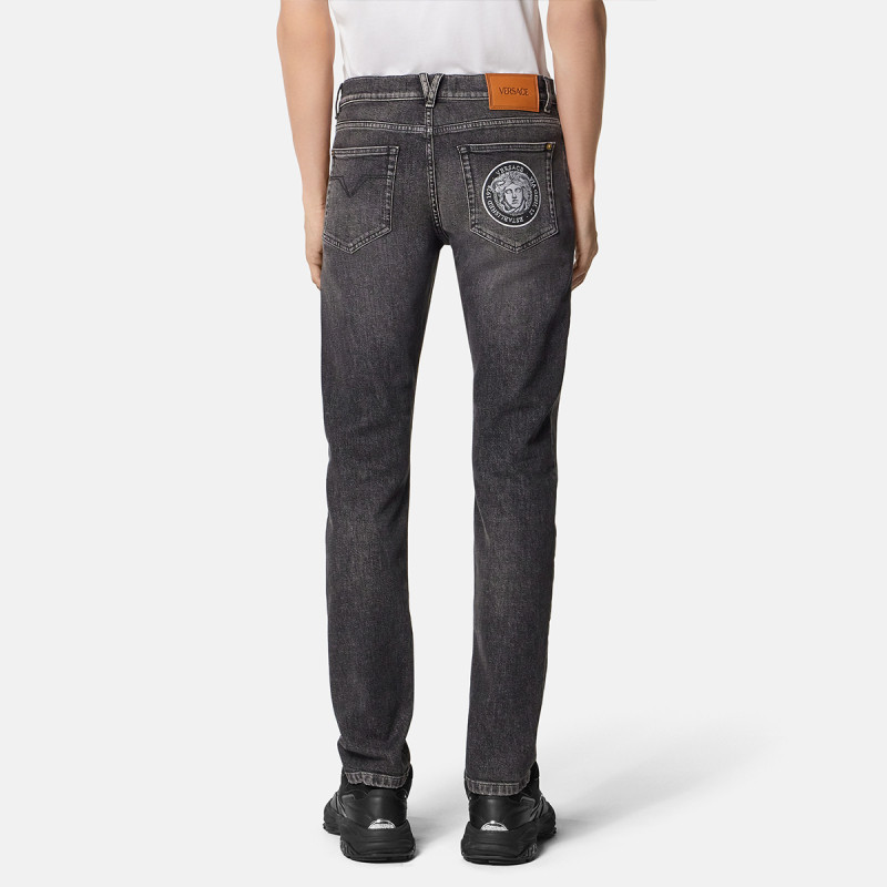 【12期免息】VERSACE/范思哲 男士Medusa Rock刺绣修身牛仔裤