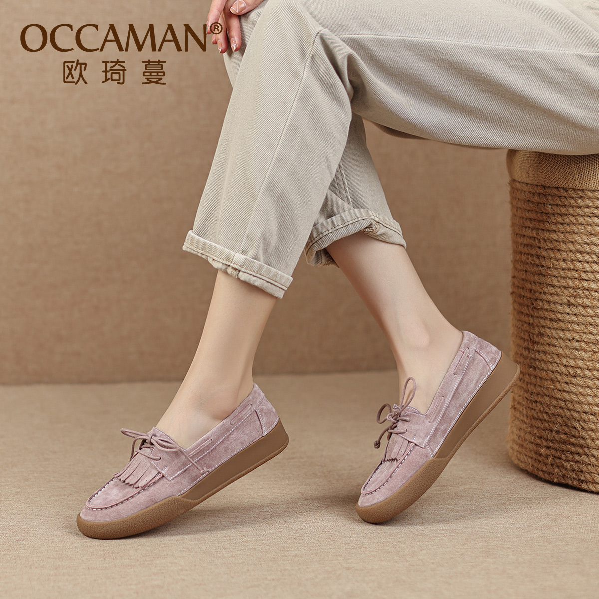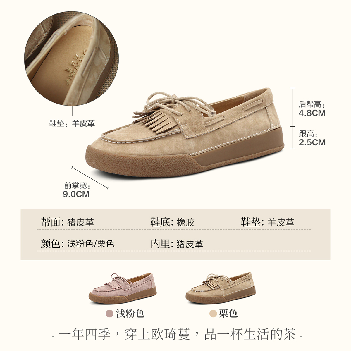 软底流苏豆豆鞋女真皮2025春季新款复古反绒平底单鞋一脚蹬乐福鞋