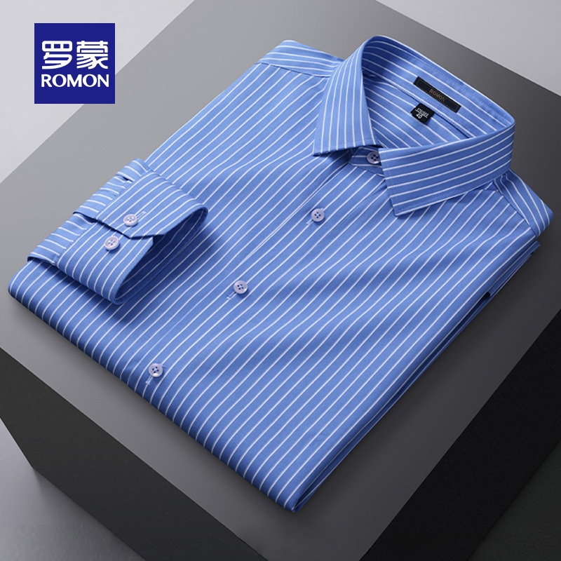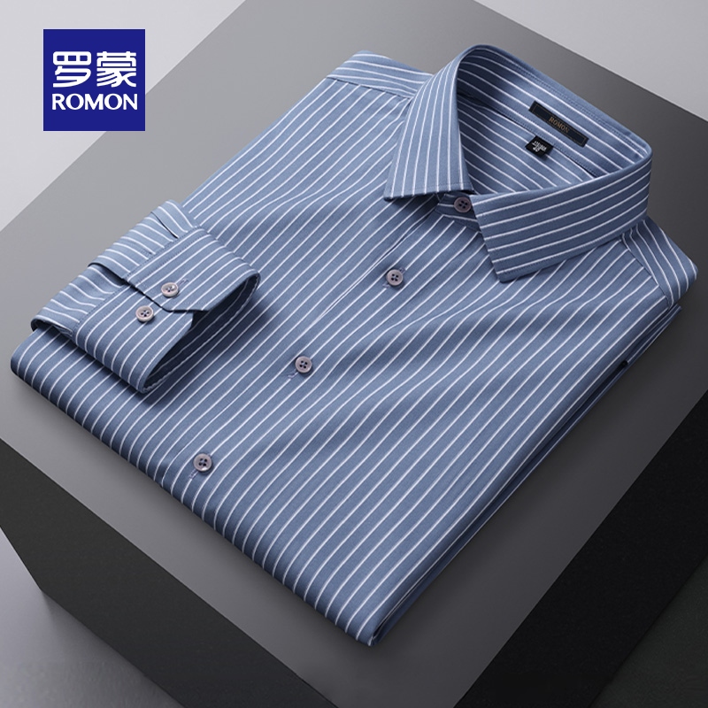 罗蒙男商务休闲纯棉舒适长袖衬衫