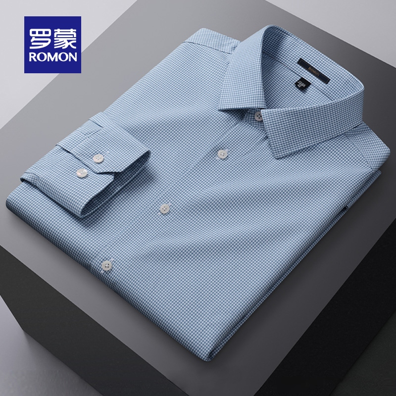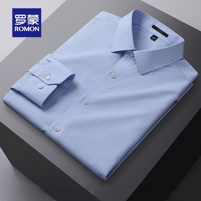【纯棉DP免烫】罗蒙长袖衬衫2025秋季新款商务职业衬衣格子工装男