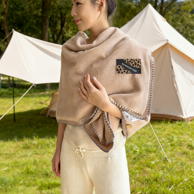 2025新品小红书同款高颜值披肩毯户外披风纽扣时尚外搭围巾膝盖毯