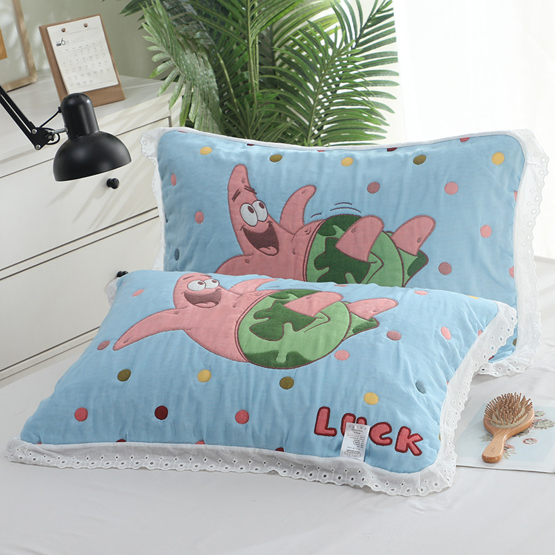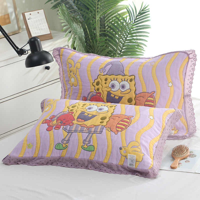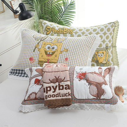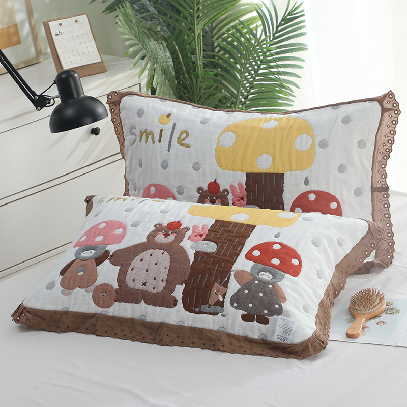 泡芙纯棉花边枕巾1对装卡通可爱高档枕头巾宿舍单条全棉枕芯盖巾