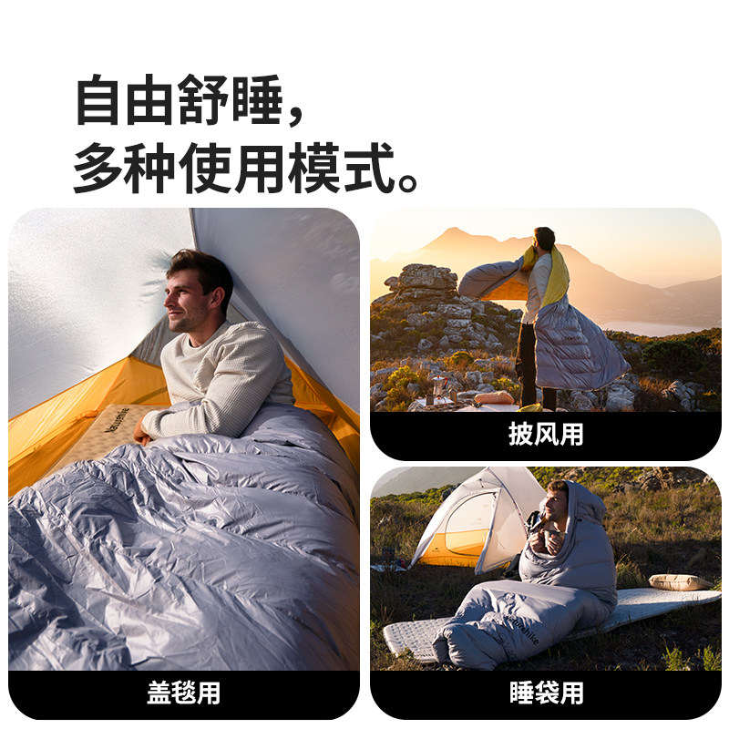 挪客CW400鸭绒羽绒睡袋成人户外露营冬季加厚防寒轻量化被子两用