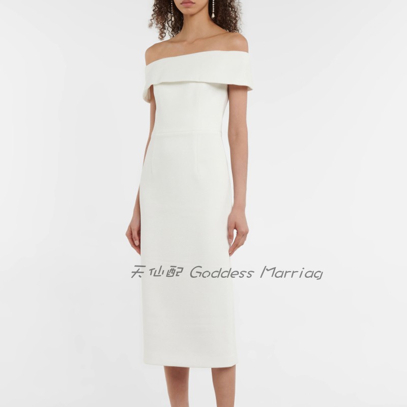 一字肩晚礼服中长裙时尚2025新款气质女生日派对年会小礼服连衣裙