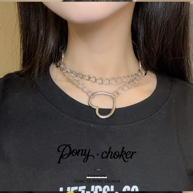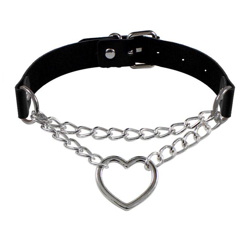 2025黑色爱心项圈脖链男朋友颈带女生项链人用颈圈牵引绳choker