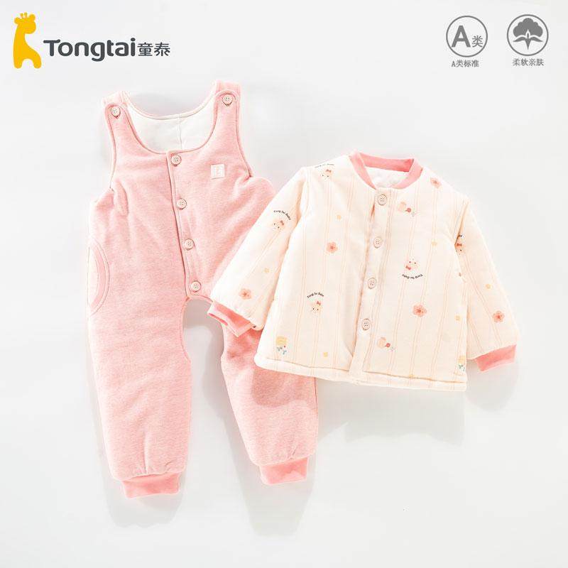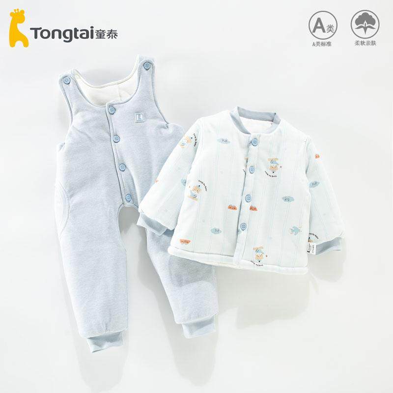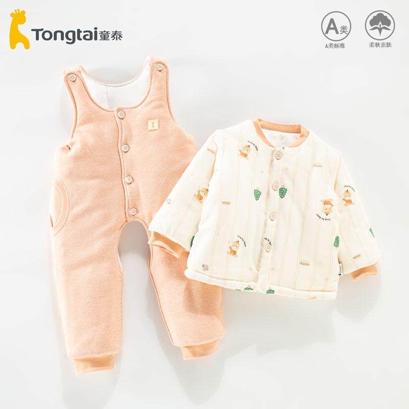 童泰婴儿冬季款加厚背带裤套装秋冬棉服宝宝冬装男童女童棉袄纯棉
