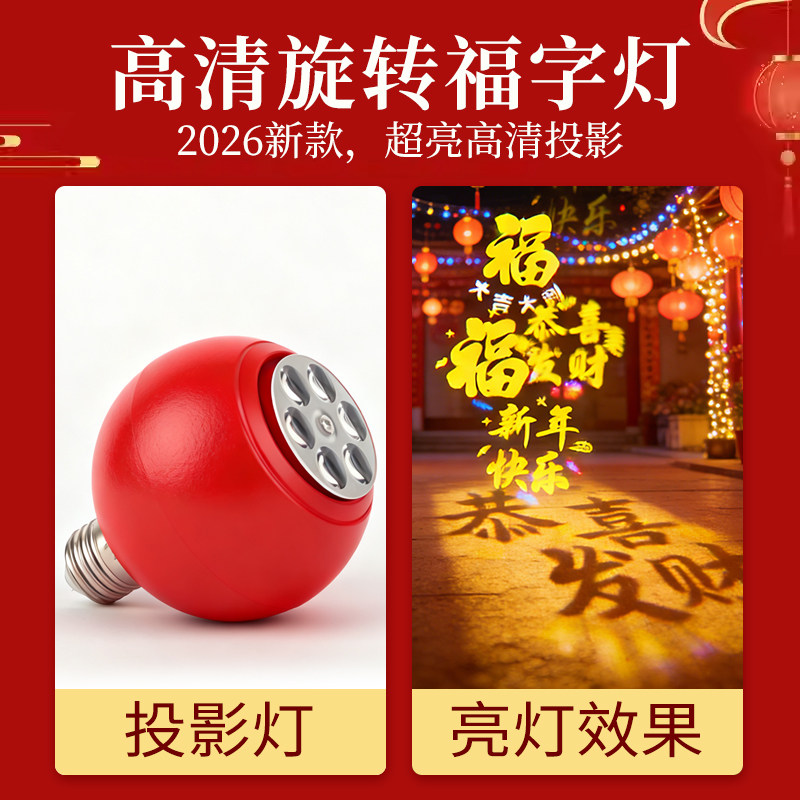 福字灯红色福字灯泡春节新年灯灯笼氛围灯新款投影灯螺口旋转墙面