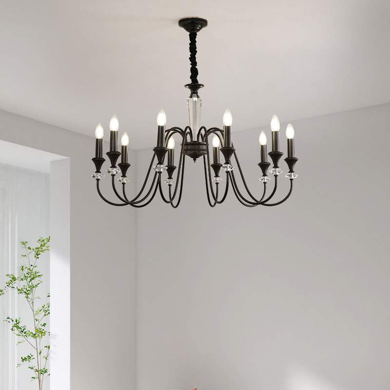 全铜法式复古蜡烛吊灯黑色美式轻奢中古南洋风客厅民宿极简灯具