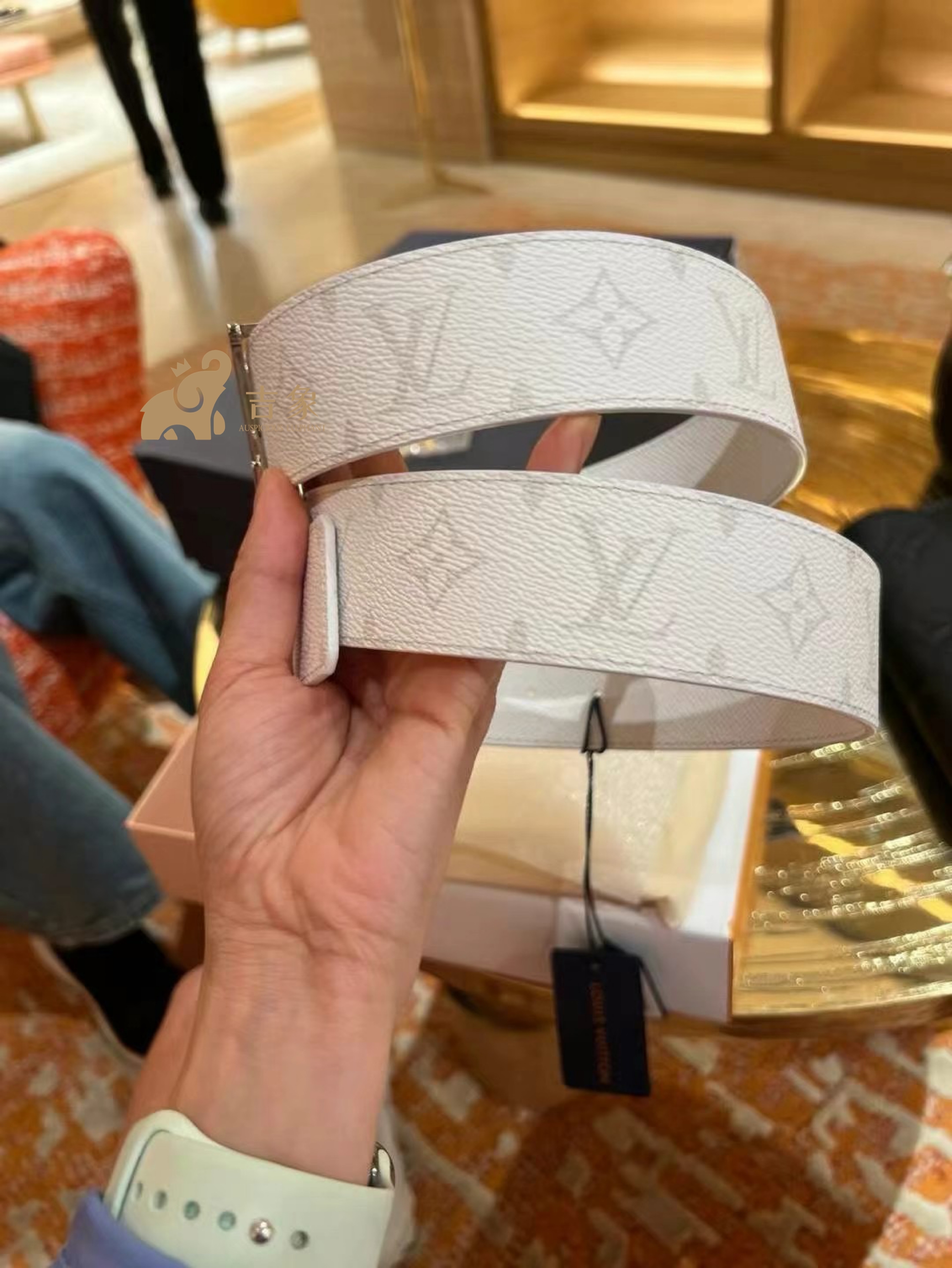 LV/路易威登2025新款男士白色老花帆布双面40MM腰带皮带M0713U