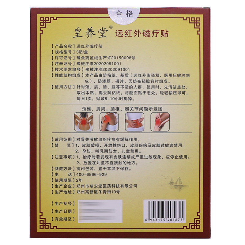 皇养堂远红外磁疗贴颈肩腰腿不适外用骨关节膝盖疼痛缓解3片正品