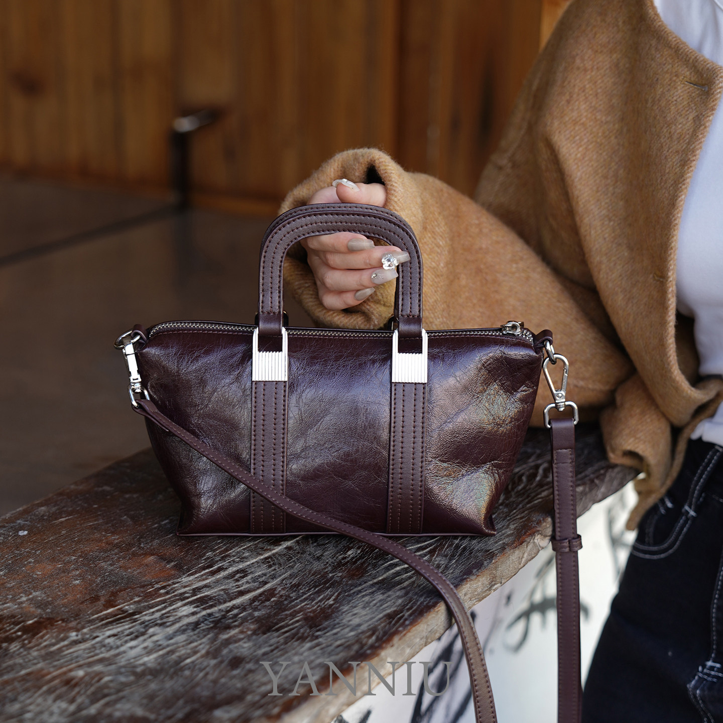 岩牛质感油蜡皮手提小包2025夏季新款轻奢手拎斜挎女士包包单肩包