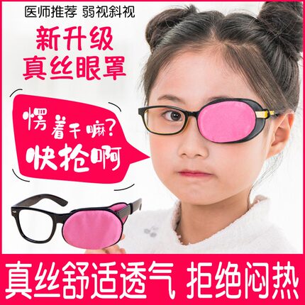 真丝儿童单眼眼罩眼镜遮盖罩弱视眼镜罩遮光训练遮盖布独眼罩眼贴