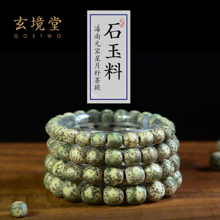 海南原生态石玉料星月菩提单圈手串阴皮灵玉料正月桶珠89/10/11mm