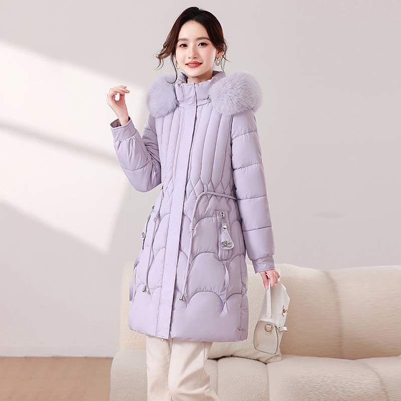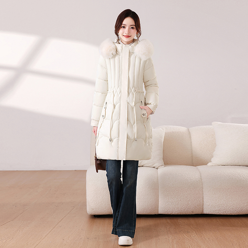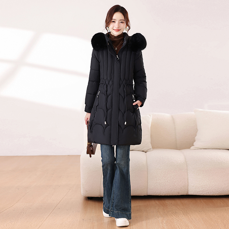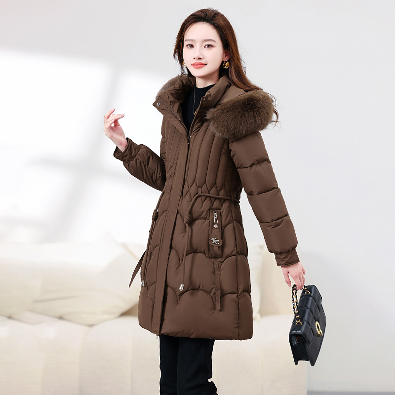 可拆卸帽洋气棉服冬季修身洋气连帽棉衣外套时尚中长款加厚棉袄女