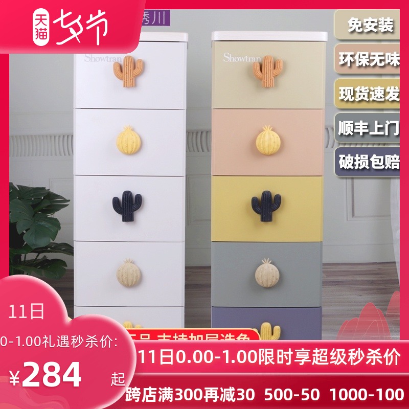 绣川加厚卧室抽屉式收纳柜塑料儿童储物宝宝衣柜玩具盒整理箱窄柜