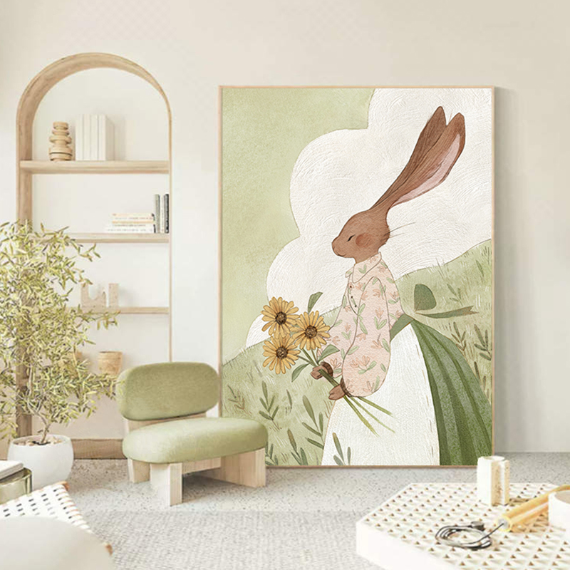 奶油风客厅装饰画现代简约高级感兔E子肌理画挂画沙发背景墙落地