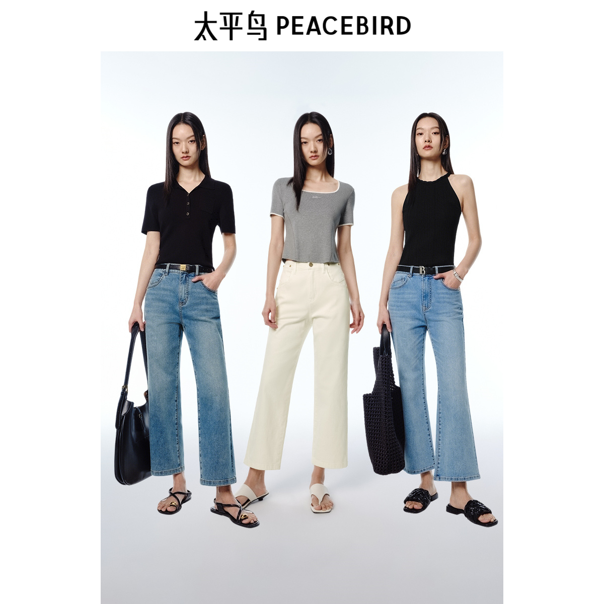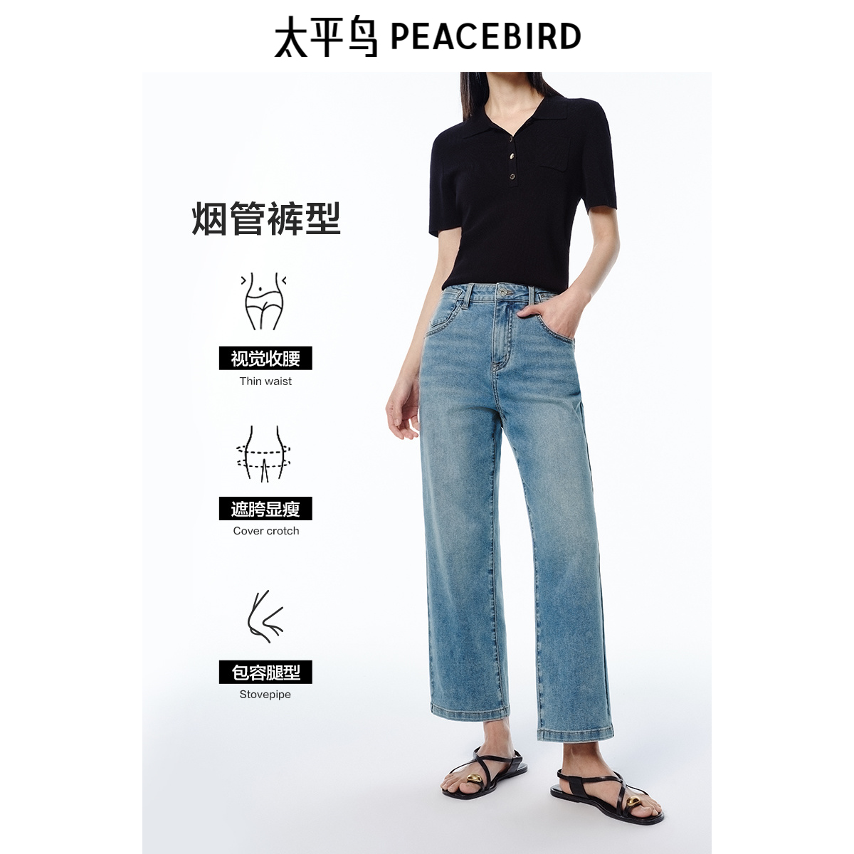 【凉感系列】太平鸟高腰牛仔裤2025年秋季新款九分烟管微喇牛仔裤