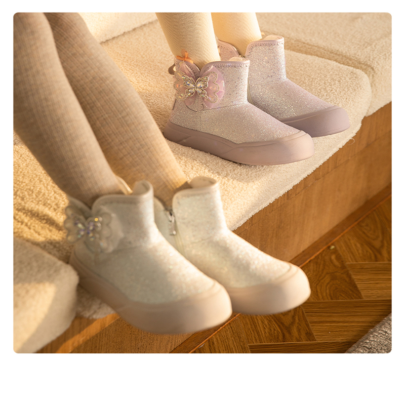 百丽童鞋儿童雪地靴女童保暖加绒宝宝靴2024冬季新款小女孩公主靴