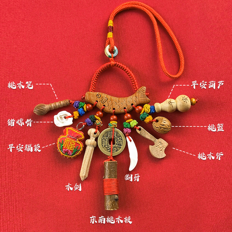普陀山桃木东南枝剑小挂件男女孕妇随身朱砂婴儿压宝宝惊外出狗牙