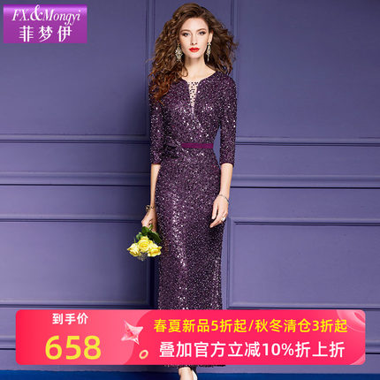 菲梦伊亮片连衣裙女春季新款高级感轻熟气质女人味性感长裙子礼服