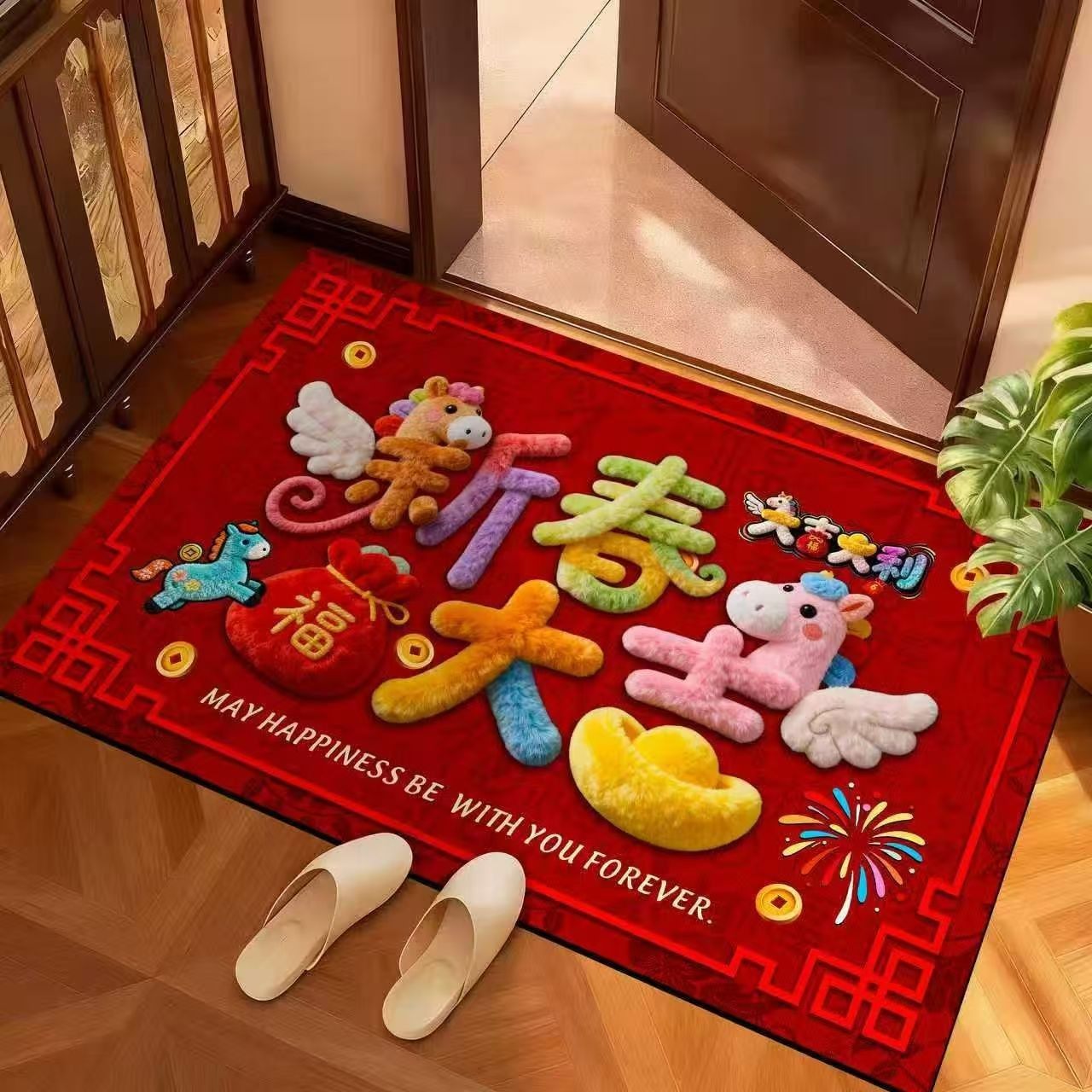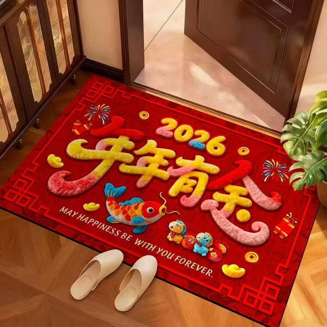 红色喜庆地垫马新年地垫入户门防滑脚垫家用进门口耐脏硅藻泥地毯