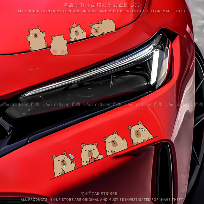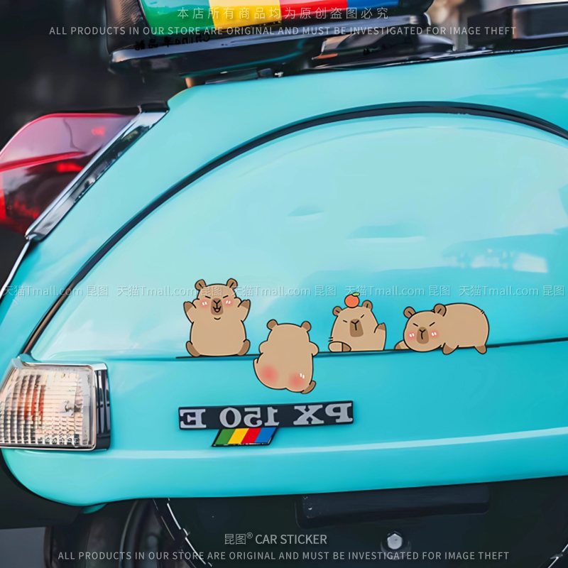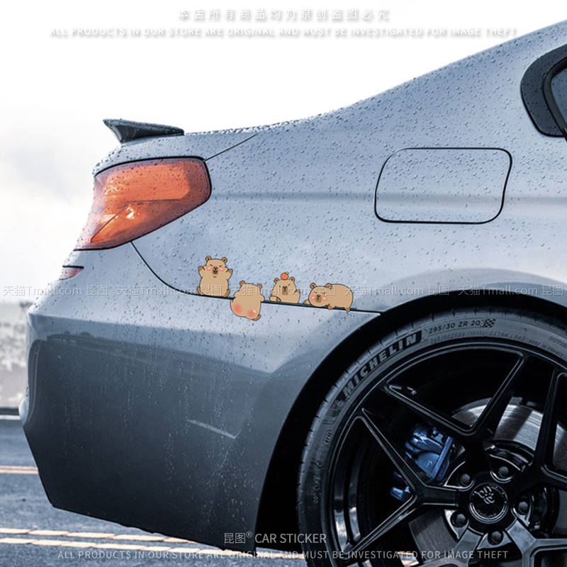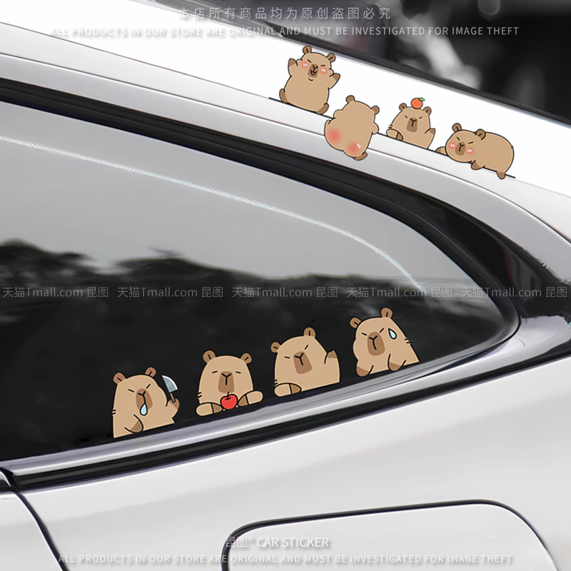 卡皮巴拉卡通汽车贴纸个性创意防水电动车窗玻璃装饰遮挡刮痕防水