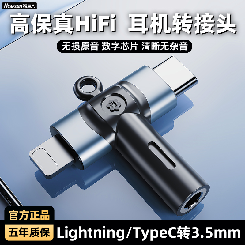 影巨人WL83二合一转接头TypeC和lightning转3.5mm转换器无电流