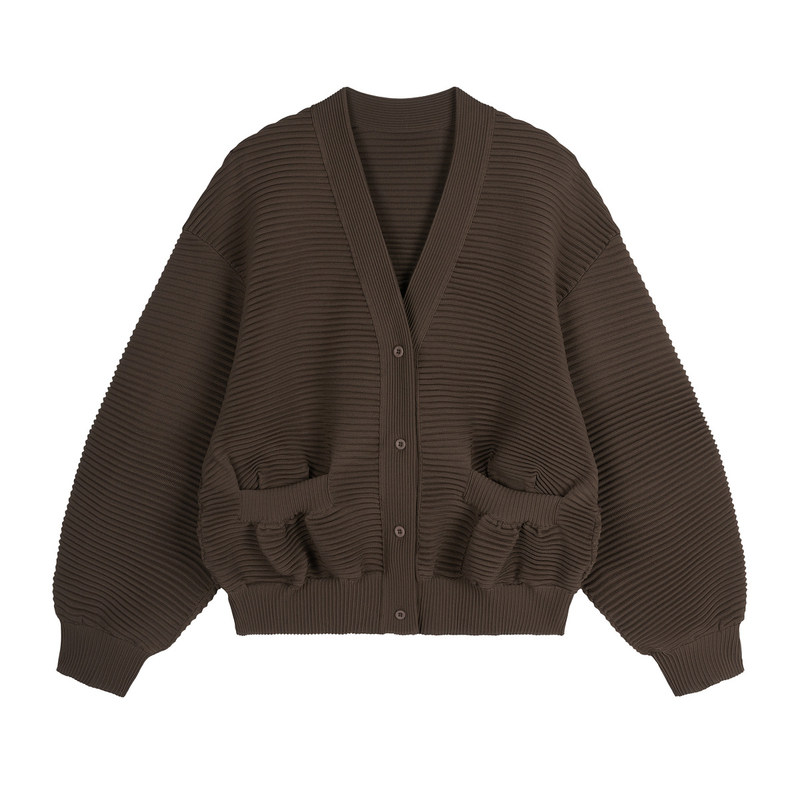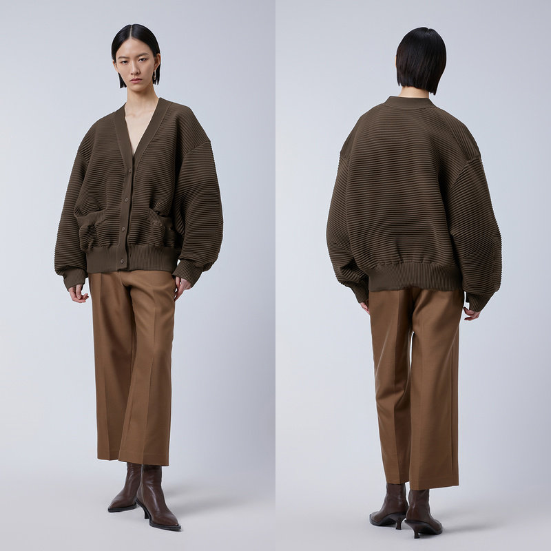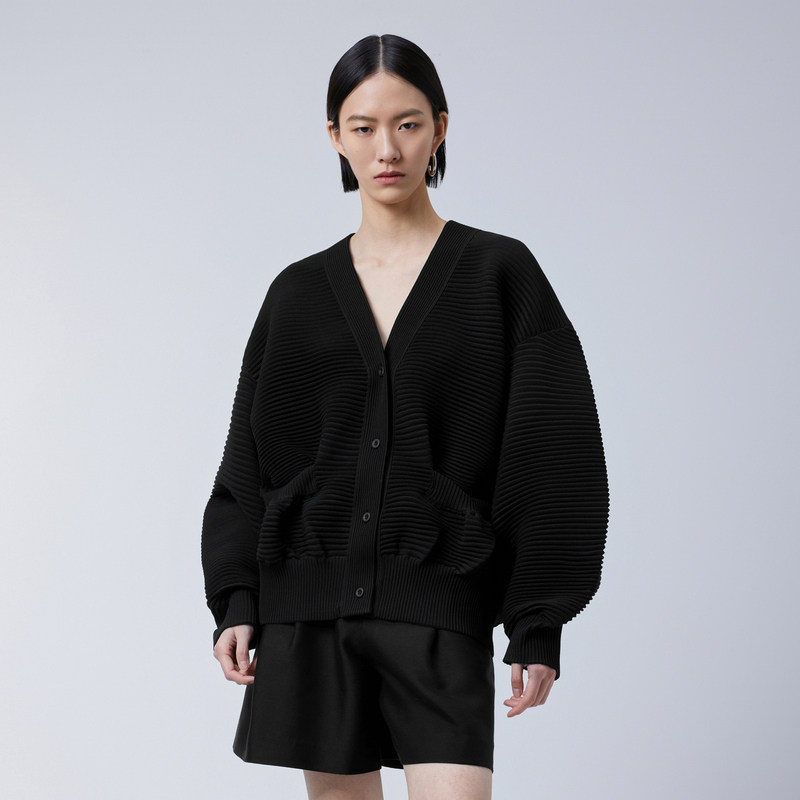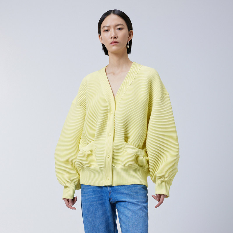JNBY/江南布衣春季女装毛针织衫V领纯色弹力宽松中长款开衫简约