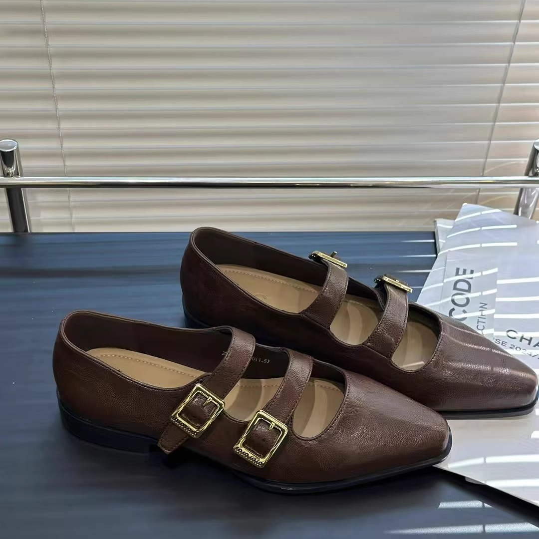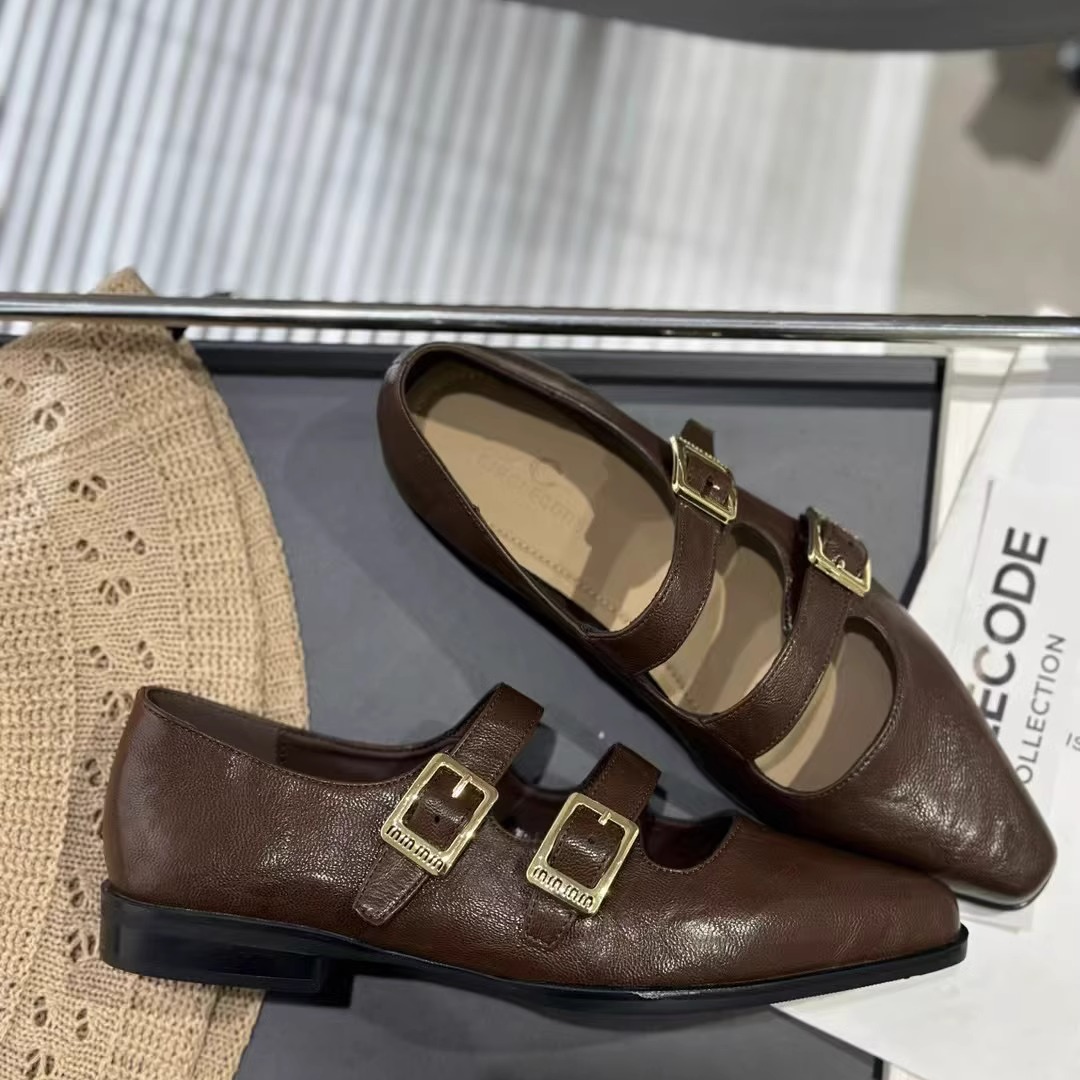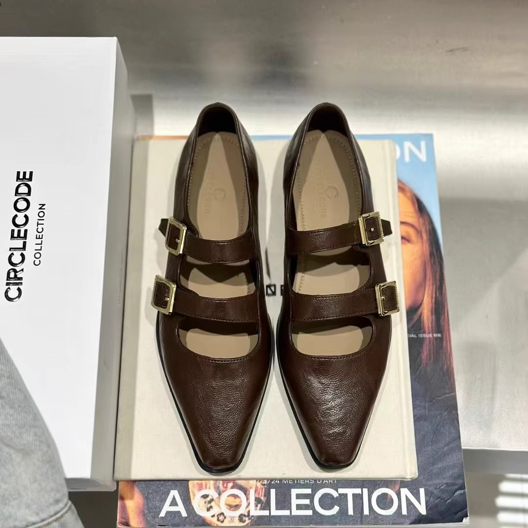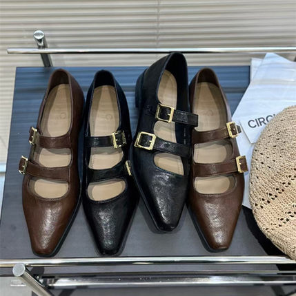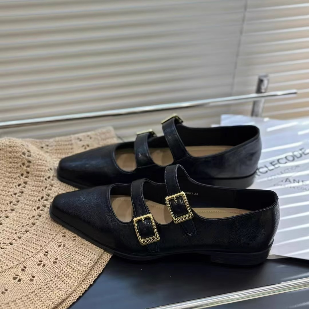 圆典法式尖头单鞋女2025春季新款英伦风双扣浅口复古玛丽珍小皮鞋