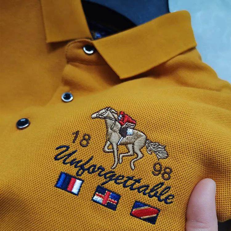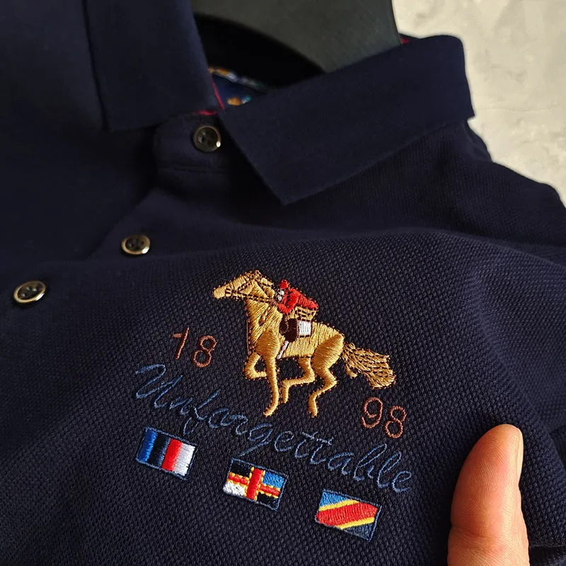 皮尔卡丹春秋新款100%纯棉长袖T恤男刺绣翻领上衣宽松大码POLO衫