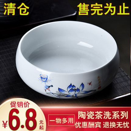 大号陶瓷茶洗有盖水洗家用小号水盂笔洗茶具配件特大洗茶杯盆器皿