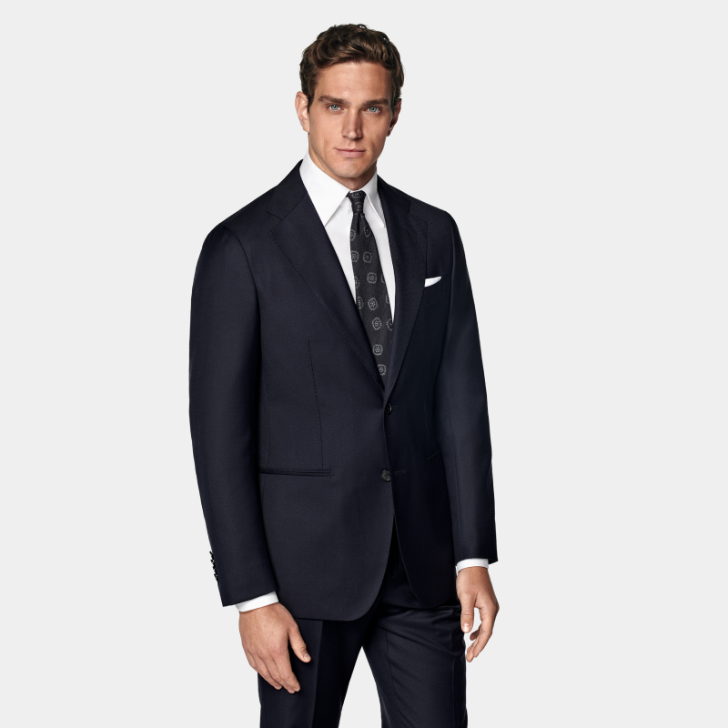 经典热卖-SUITSUPPLY藏青色羊毛修身男士西装套装