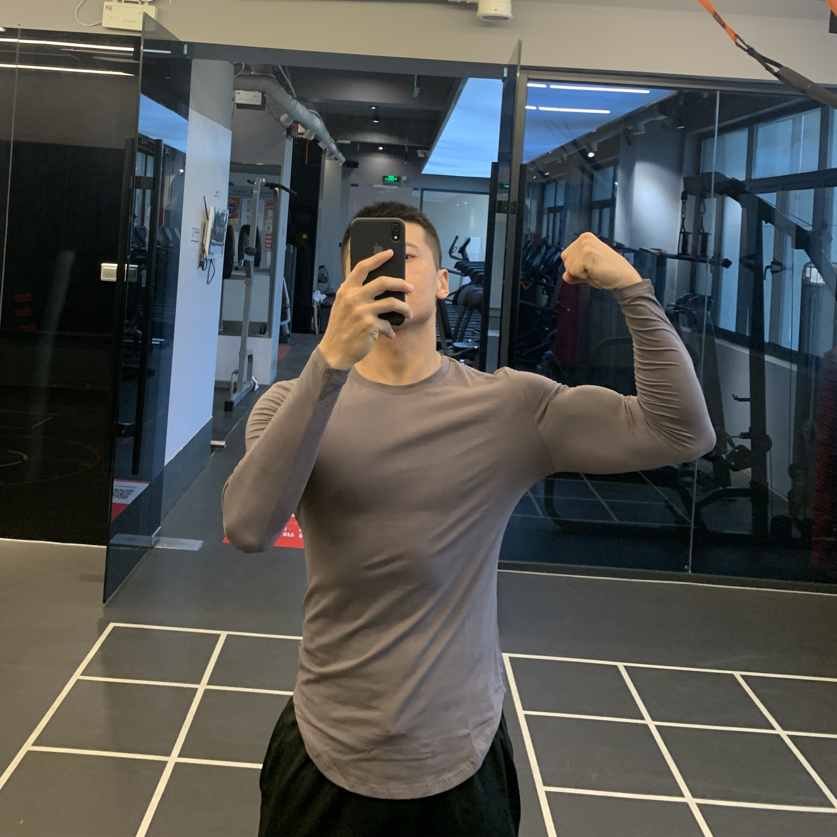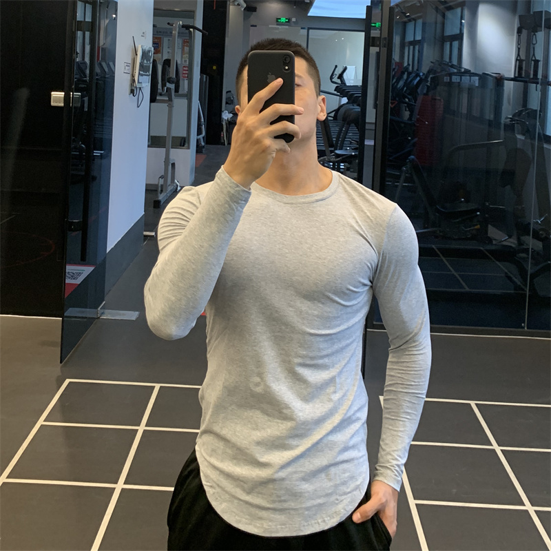 上紧下松长袖遮肚显瘦运动t恤男