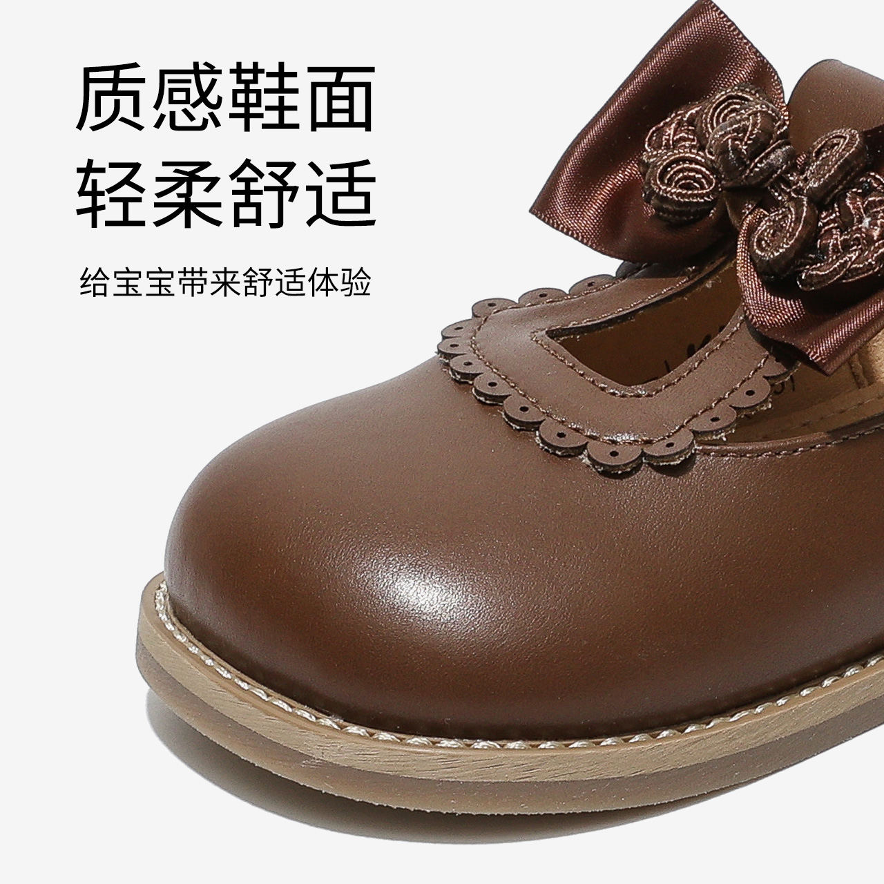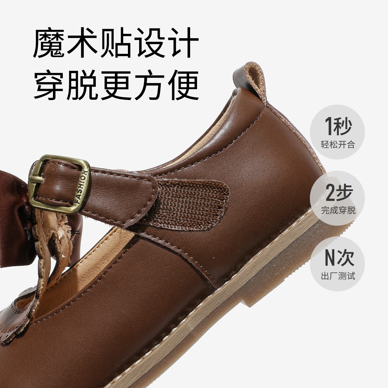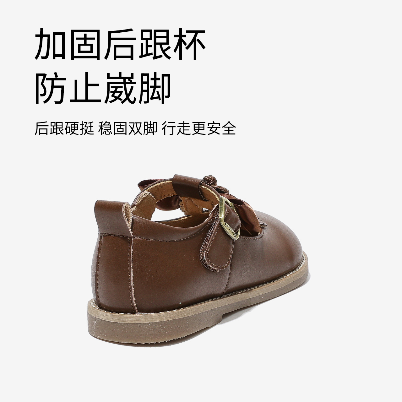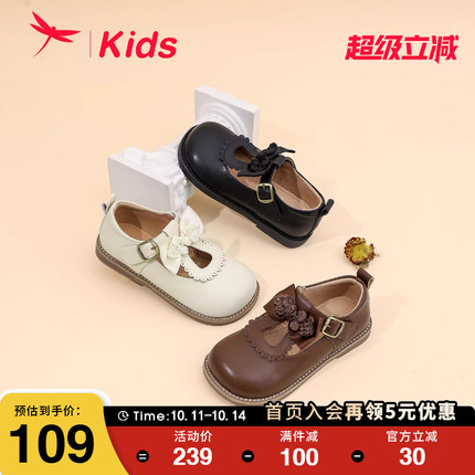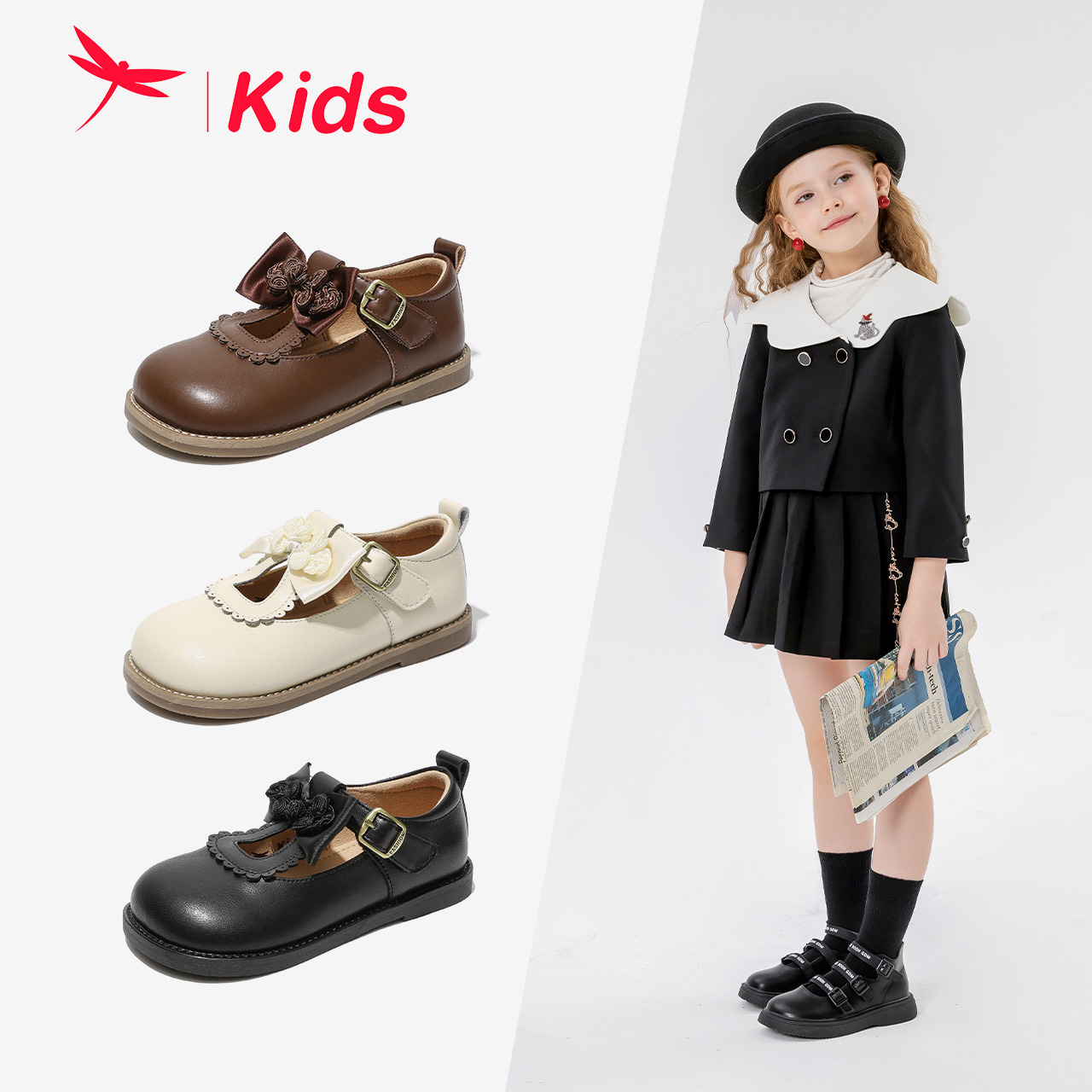 红蜻蜓女童鞋春秋新品皮鞋英伦复古蝴蝶结洋气公主鞋软底舒适防滑