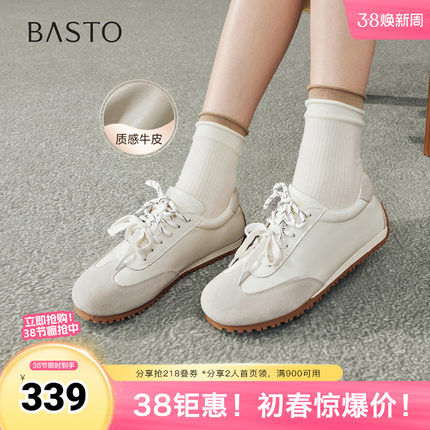 百思图2026春季新款商场同款德训鞋时尚复古女休闲运动鞋W7551AM6