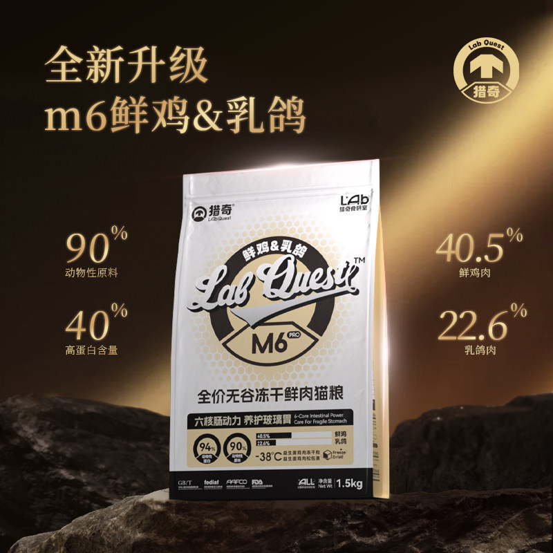 猎奇M6鲜鸡乳鸽猫粮全价无谷生骨肉成幼猫M8美毛含冻干4袋*1.5kg