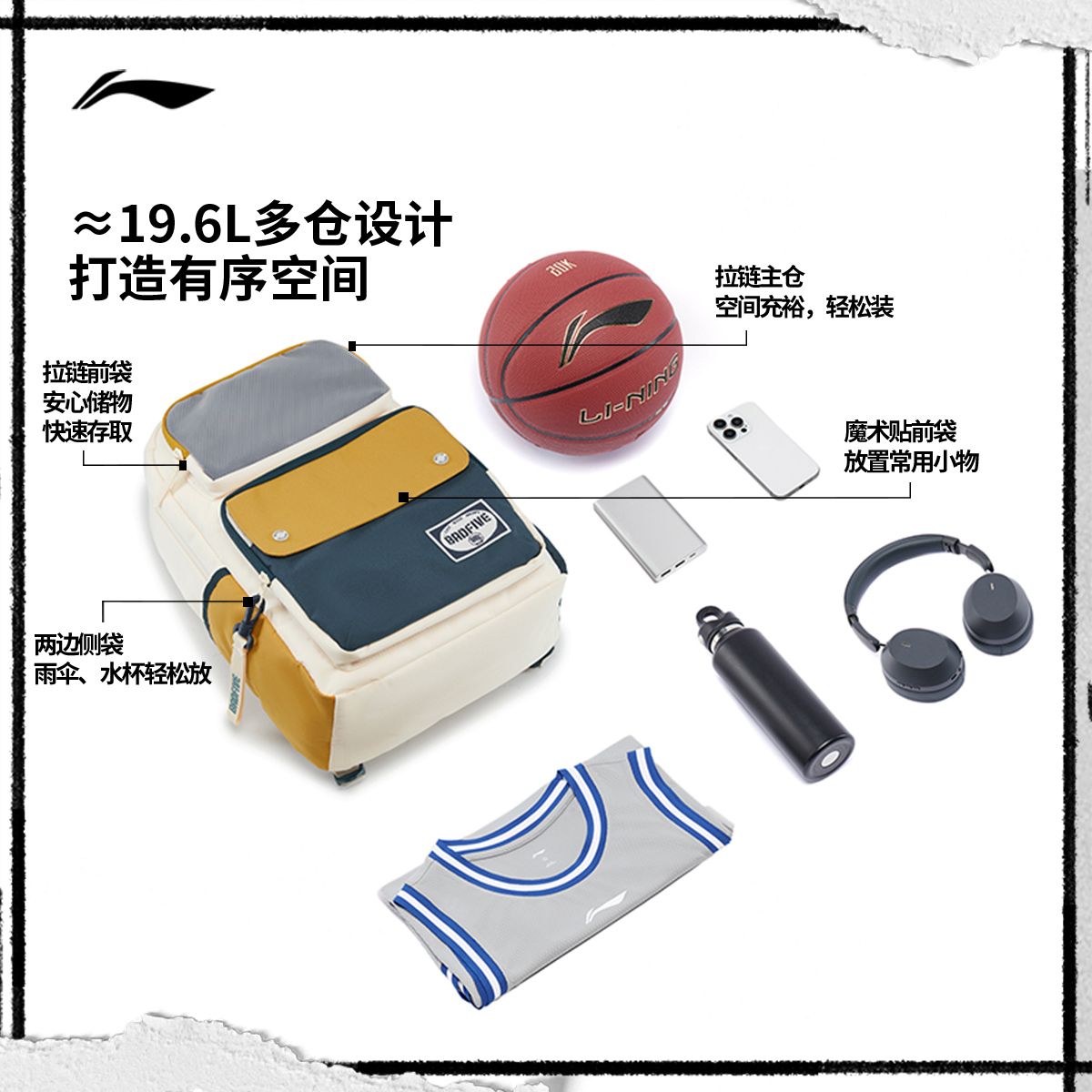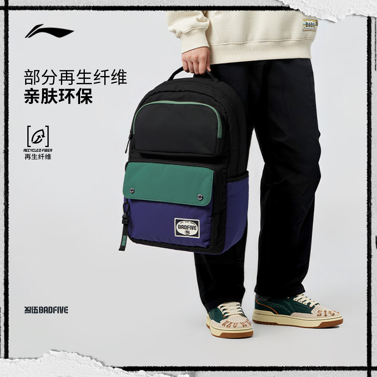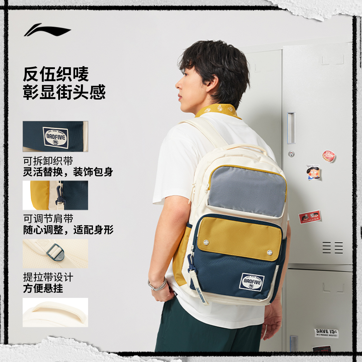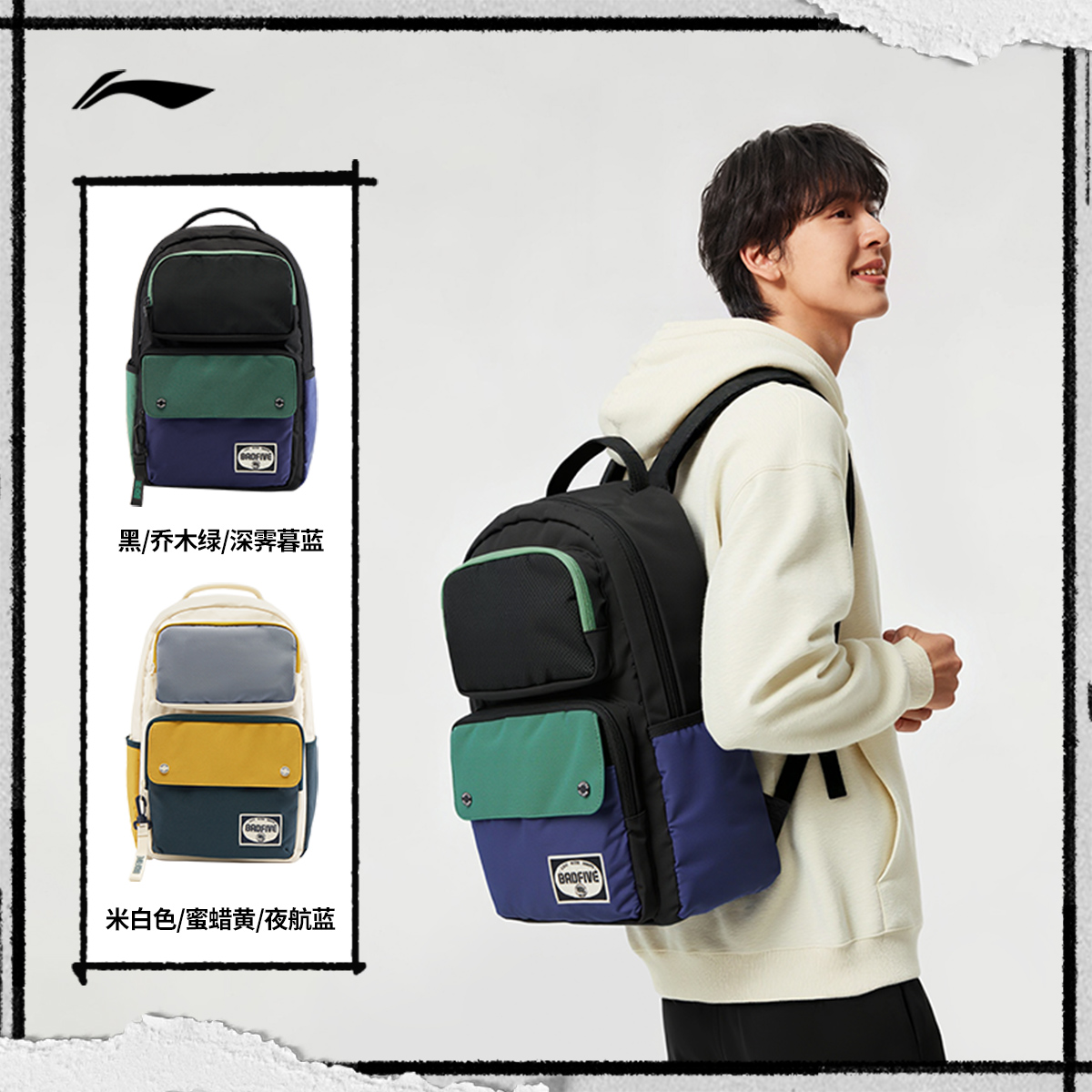 李宁反伍双肩包男女2025新款背包通勤轻便容量大学生书包运动包