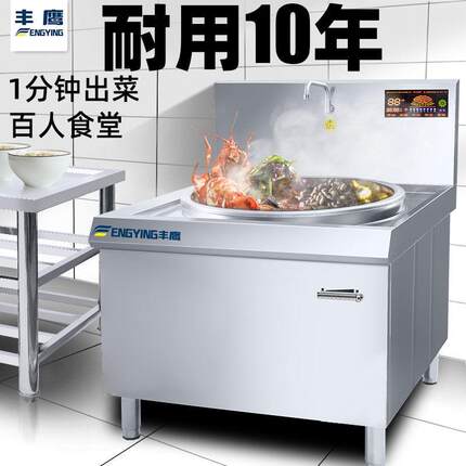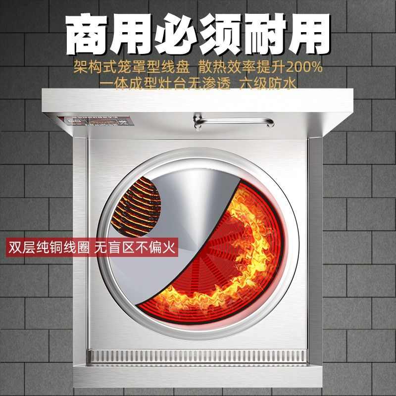 商用电磁炉大功率30KW食堂餐厅电磁灶单双头凹面大锅灶一体电灶台